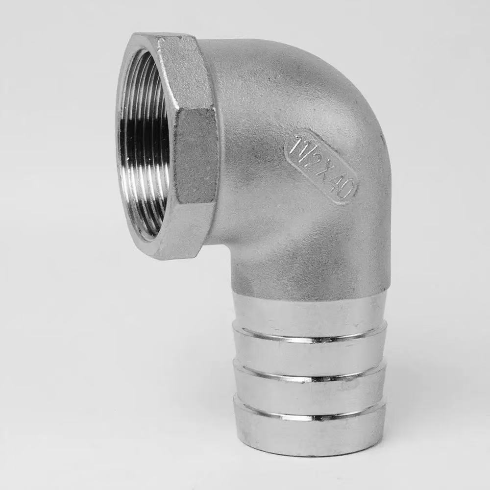 90 ဒီဂရီ အမျိုးသမီး ချည်မျှင်တံတောင်ဆစ် တပ်ဆင်ခြင်း-အမျိုးသား-ချည်မျှင်အစိတ်အပိုင်းများနှင့် ချိတ်ဆက်ရန်အတွက် ဒီဇိုင်းထုတ်ထားသည့် တစ်ဖက်တွင် အမျိုးသမီးချည်ကြိုးတစ်ခုနှင့် အခြားတစ်ဖက်တွင် သံဆူးပိုက်တစ်ခုပါရှိသည်။